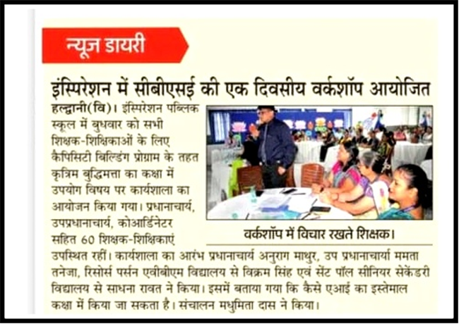 A successful Capacity Building program on the use of Artificial Intelligence in classroom teaching was organized on September 17, 2025 by Inspiration Public School,Kathgodam to empower educators with #knowledge and practicl skills related to AI integration in teaching practices.The 8 - hours workshop aimed to familiarize teachers with innovative AI tools and #technique to enhance classroom teaching. The program started with the lighting of ceremonial lamp by honourable Principal, Mr.Anurag Mathur, accompanied by honorable Vice Principal, Mrs.Mamta Taneja, co-ordinator , Mrs.Priyanka Sharma, and the Resource persons for the workshop, Mrs Sadhana Rawat and Dr.Vikram Singh Khanka. The program was divided into three sessions. The first session was given by Mrs.Sadhana Rawat where she explained about generating Nano pics, Retro pics, AI Gemini photos. Session- 2 was conducted by Dr.Vikram Singh Khanka where he talked about AI in Education and it's significance. He also told about Automating Grades, Smart content creation and most importantly , how temporary Email can be created to avoid leakage of your data. Session 3 was again taken by Ms.Sadhana Rawat which was all about the need to incorporate AI in teaching learning assessment. Different websites were told where visuals can be made from the text to assist students to #enhance their performance in studies. Various #activities were conducted by the resource persons to highlight the importance of AI in education. Together with all this, a delicious lunch & tea was provided by the school. The session ended with a vote of thanks by Principal Mr Anurag Mathur .The whole session was worth appreciating and liked by everyone.