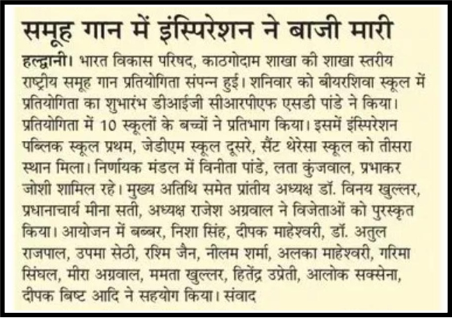 Inspiration school wins national group singing competition held at Beersheba Sr Sec School Haldwani
