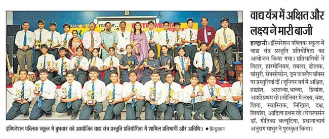 Music gives a soul to the universe, wings to the mind, flight to the imagination, and life to everything." Inspiration Public School, Kathgodam, recently hosted the highly anticipated "Instrumental Freaks" program on October 15, 2025. This captivating event brought together young musicians from classes 6 to 12, showcasing their instrumental skills and creativity. Ceremony and Performances The program commenced with the lighting of the ceremonial lamp by esteemed dignitaries, including Chairperson Dr. Geetika Balutia, Principal Mr. Anurag Mathur, and Coordinator Mrs. Priyanka Sharma. The event was divided into junior (classes 6-8) and senior (classes 9-12) categories, featuring enchanting performances by students on various instruments, including saxophone, keyboard, harmonium, drums, tabla, clapbox, guitar, and dholak. Winners The winners of the event were: Junior Category - Saxophone: Akshit Kohli (6A) - I, Rafeh Ahmad (6A) - II, Bhargav Parihar (8A) - III - Keyboard: Hridayansh Tiwari (6A) - I, Keshav Vashishtha (8C) - II, Aviral Bhardwaj (6A) - III - Harmonium: Aradhya Pandey (8A) - I, Harshika Adhikari (6B) - II, Mayil Sah (7B) - III - Drums: Bhavya Bhatt (8A) - I, Vihaan Tiwari (8B) - II - Tabla: Priyansh Bhatt (8C) - I, Om Pant (6A) - II, Gurnoor Kaur (8A) - III - Clapbox: Aashi Mishra (8B) - I, Manvik Adhikari (7A) - II, Aaradhya (8B) - III Senior Category - Saxophone: Lakshya Budhlakoti (9A) - I, Rudra Sharma (9B) - II, Shivansh Arya (9B) - III - Harmonium: Shiva Rawat (11C) - I, Lakshita Tiwari (9C) - II, Manokriti Pandey (9A) - III - Keyboard: Vansh Pathak (10A) - I, Hrdayanshi Verma (9B) - II, Tanishq Bhatt (9A) - III - Drums: Swastik Goswami (11E) - I, Bhavya Pandey (10A) - II, Pratyush Bisht (9C) - III - Clapbox: Daksh Karki (9A) - I, Nimish Chaubey (10A) - II - Guitar: Shivansh Bisht (10C) - I, Shivansh Balutia (9A) - II, Sawan Kumar (12D) - III - Dholak: Aditya Joshi (12C) - I, Lavyansh Kumar (9B) - II - Tabla: Nikhil Kohli (9A) - I, Arinjai Murutoliya (9A) - II, Daksh Bhatt (9A) - III Judges and Anchors The event was judged by renowned music personality Mr. Prem Goswami and Mr. Manoj Pandey, Founder of Rangeet Art Centre, Haldwani. The program was anchored by talented junior and senior pairs, along with their mentors Mr. Manmohan Joshi and Ms. Pooja Joshi. Success and Appreciation The event was a grand success, thanks to the able guidance of Mr. Sanjay Goswami, Ms. Shikha Solomon, Mr. Mohit Pant, Ms. Gunjan Joshi, and Mr. Gaurav Kumar. The Management and Principal Sir appreciated the participants for their outstanding performances, making the event a truly unforgettable experience.