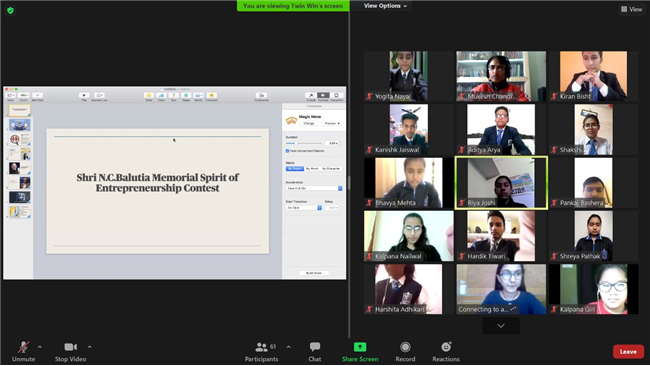 Inspiration Public School, in association with Twin Win, has officially launched an Entrepreneurial event, ‘Shri N.C.Balutia Memorial: Spirit of Entrepreneurship’ contest. The students of class 9th and 11th attended a webinar on ‘Entrepreneurial Skills’ by Mr Vaibhav Pande, CEO, Twin Win and Mr Anshul Vashisht, COO, Twin Win. The co-founders of Twin Win shared what it takes to be successful entrepreneur. The students were also given tips on how to create a successful business model. The students will now pitch their Entrepreneurial Idea in front of the judges in the first round of the contest. The winners after the final round will be awarded with cash prizes and attractive gifts.